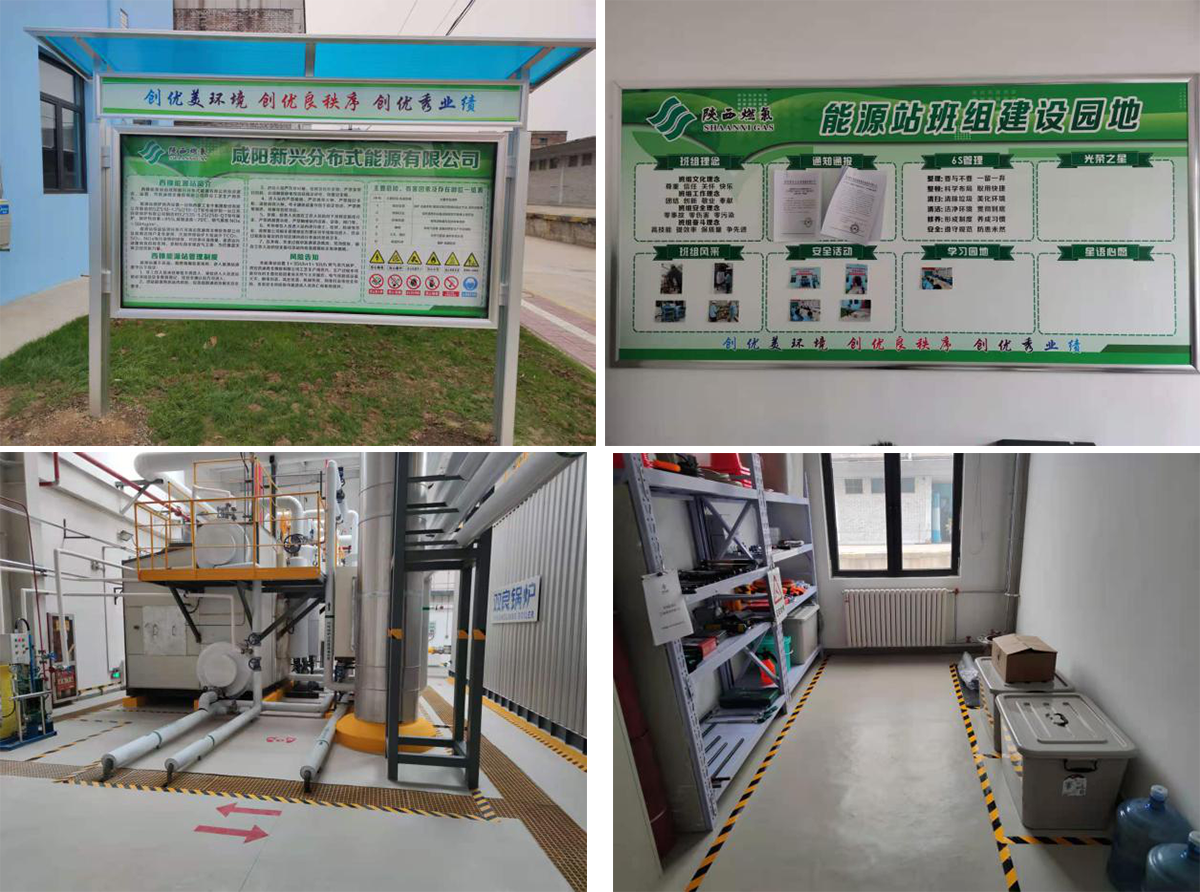 西橡能源站安全生產精細化管理試點工作的成敗及能源站目視化、“6S”精益管理推行創建的深度是新能源公司安全生產精細化管理工作推廣的關鍵。新興公司上下齊動員、員工齊動手,從徹底清掃清潔、整頓治理設備、廠房衛生,消除設備設施污染和基建缺陷痕跡入手,依照安全設備設施顏色標準對欄桿扶手、機械防護罩進行規范油漆,對危險部位進行標識標志,對巡檢路線、巡檢點、表計運行區間進行規劃定位劃線標識,對巡檢標準、檢修標準及文明檢修進行策劃規定,通過規范進站須知、風險告知、入站檢查對照表、安全四色圖、風險及控制雙清單、安全警示、安全標語、標準化班組園地建設、運行工器具及材料定置化堆放、定位,使西橡能源站運營現場安全生產、安全文化氛圍及規范化精細管理水平得到大步提升。